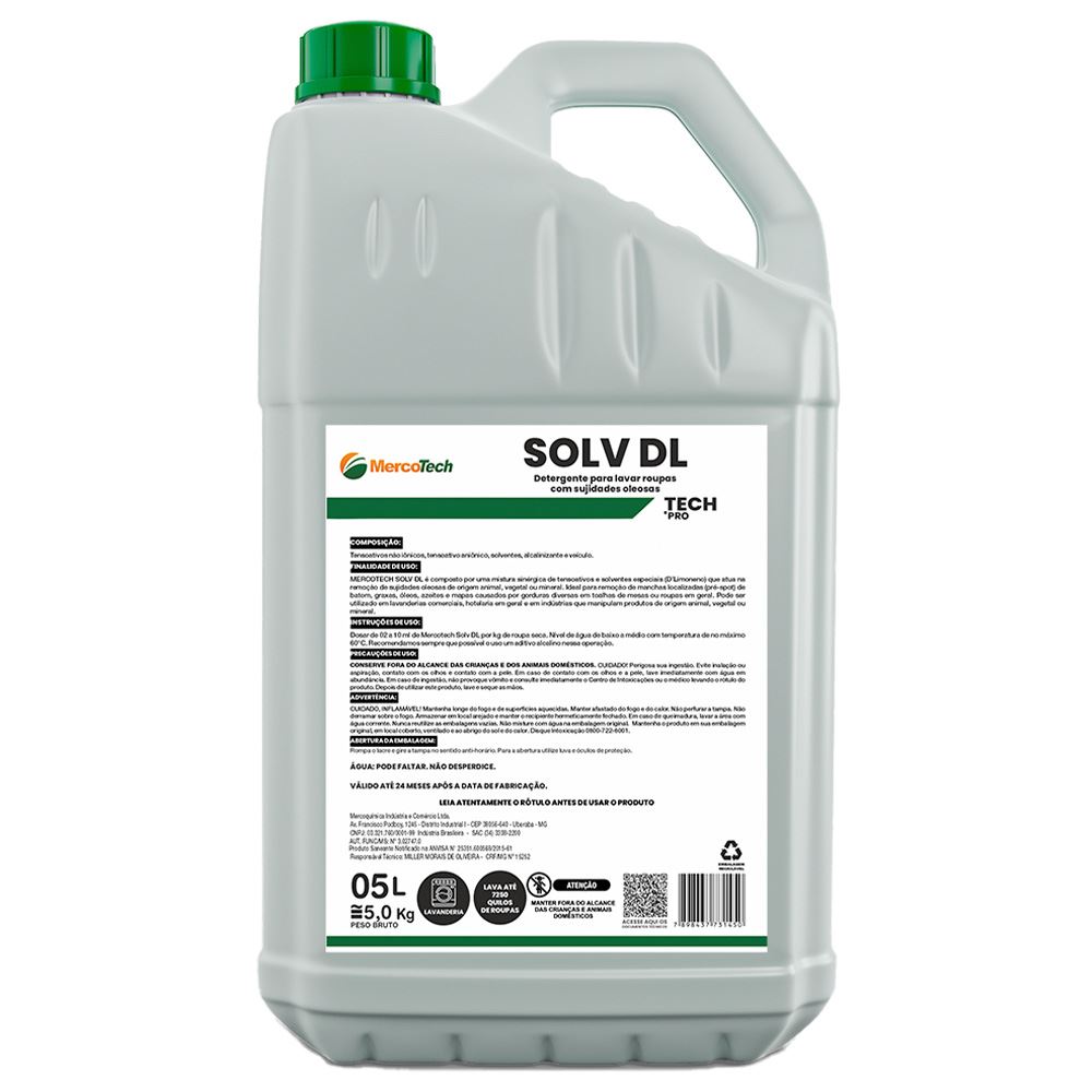 MERCOTECH SOLV DL - DET PARA LAVAGEM DE ROUPAS COM SUJIDADES OLEOSAS